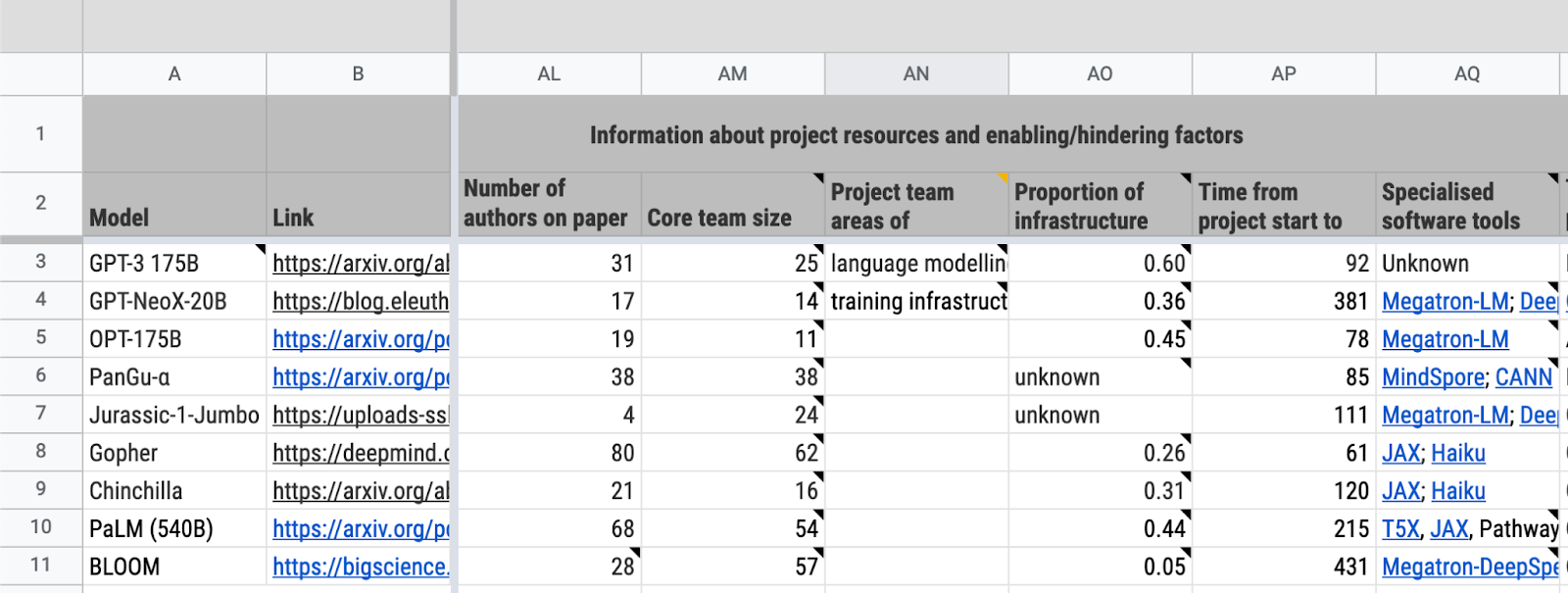 Note that for the most part, I failed to obtain relevant information from the people who were involved in developing the above-mentioned nine models. However, I did get some information directly from developers of GPT-NeoX-20B, Gopher, and BLOOM.