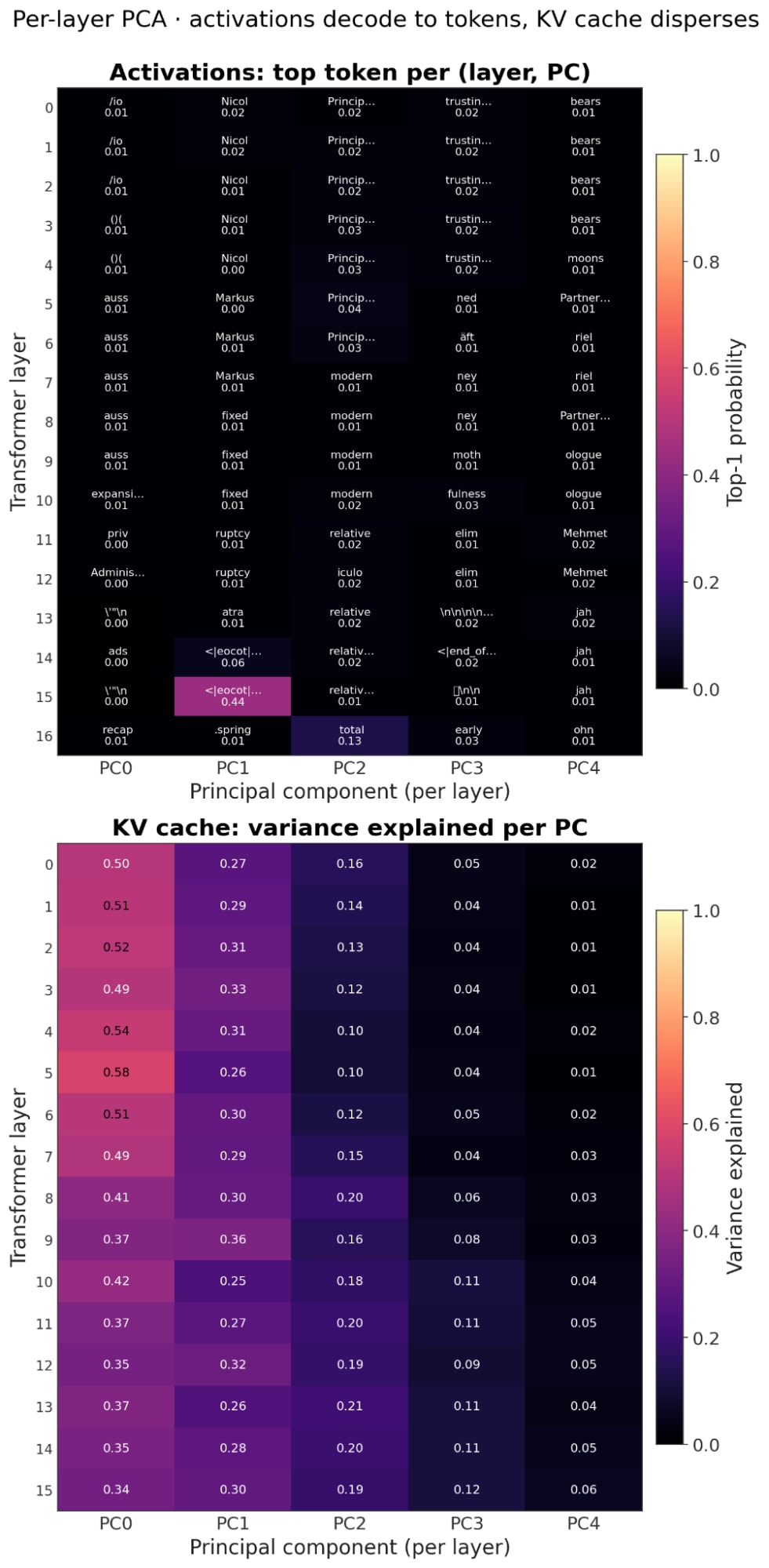 Looking at the PCA for KV cache they do not look like there is interpretable directions all of the directions seem to have similar variances
