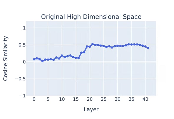 Predicting Jailbreak Success. The comparison between successful and unsuccessful jailbreak attacks is interesting! Just like predicting deception in the first blog post, the cosine similarity metric here seem to offer great predicting power for whether a particular jailbreak attack will be successful or not: if the cosine similarity become larger over the layers, then the jailbreak attack will less likely be successful, and vice versa.