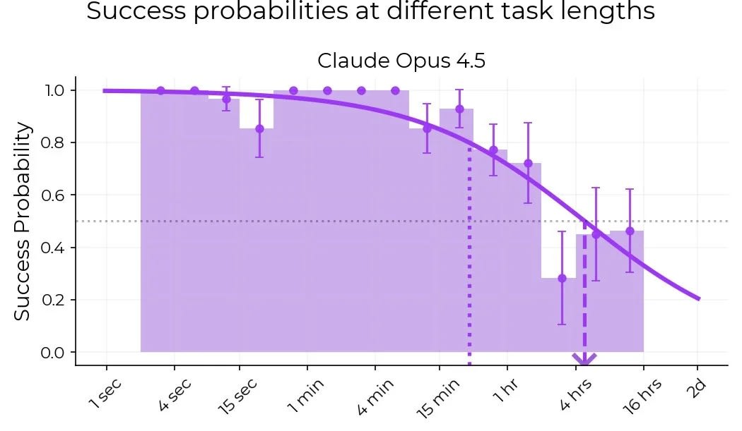 My point isn’t that there’s enough samples or that it isn’t possible to game the METR test, it’s that the measured improvement for Claude Opus 4.5 doesn’t seem to be primarly in the 2-4 hr bracket, if anything it’s dominated by 4-16hr.