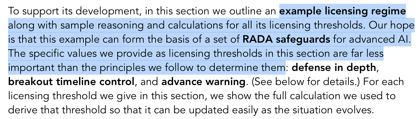 To avoid precisely this misunderstanding, the report states in several places that those very numbers are, in fact, only examples for illustration. A few screencaps of those disclaimers are below, but there are several others. Of course we could have included even more, but beyond a certain point one is simply adding more length to what you correctly point out is already quite a sizeable document. Note that the Time article, in the excerpt you quoted, does correctly note and acknowledge that the Tier 3 AIMD threshold is there as an example (emphasis added):