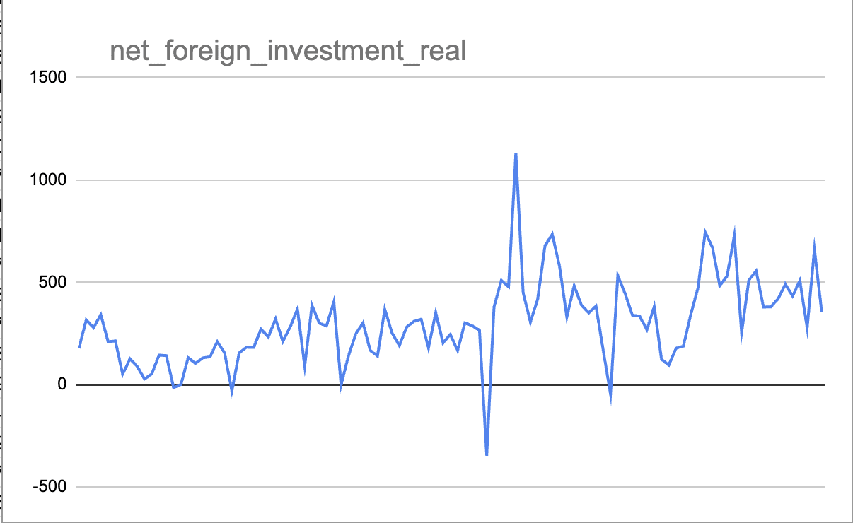 I’m dubious on Smith article though. He claims to be talking about foreign capital investment, then uses a bunch of proxies that aren’t net investment. If you graph actual foreign investment, you see a decline, but it looks like a continuation of a trend from the Biden years, or arguably even Obama. The only time investment went net negative was in 2014, which stems from Vodafone selling Verizon back to itself.