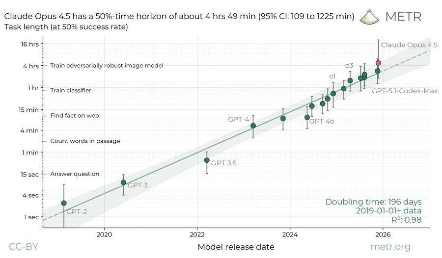 The error bars are also much smaller when you look at the plot on a log-y-axis. Like, in some sense not being able to distinguish a 10-minute time horizon from a 30-minute one is a lot of error, but it’s still very distinct from the one-minute time horizon of the previous generation or the 2-hour time horizon you might expect from the next generation. In other words, when you look at the image you shared, the error bars on o4 mini don’t look so bad, but if you were only looking at models up to o4 mini you’d have zoomed in a bunch and the error bars on o4 mini would be large too.