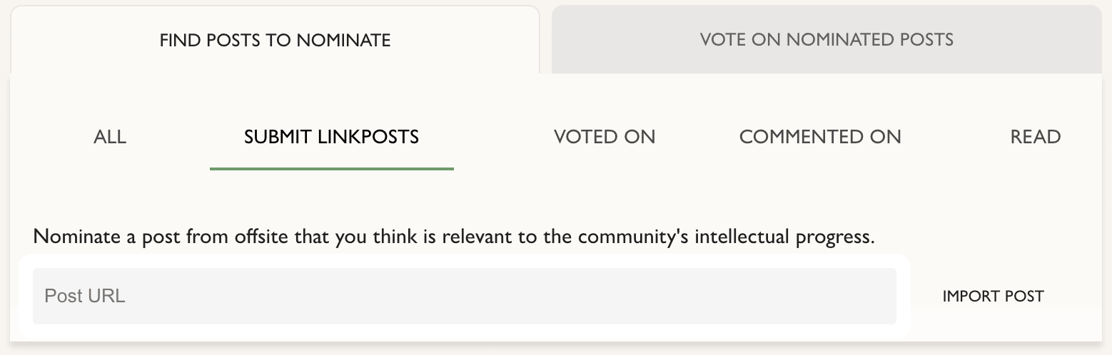 Just to check, did you use the “Submit Linkposts” functionality on the nomination page for that, or did you crosspost it some other way?